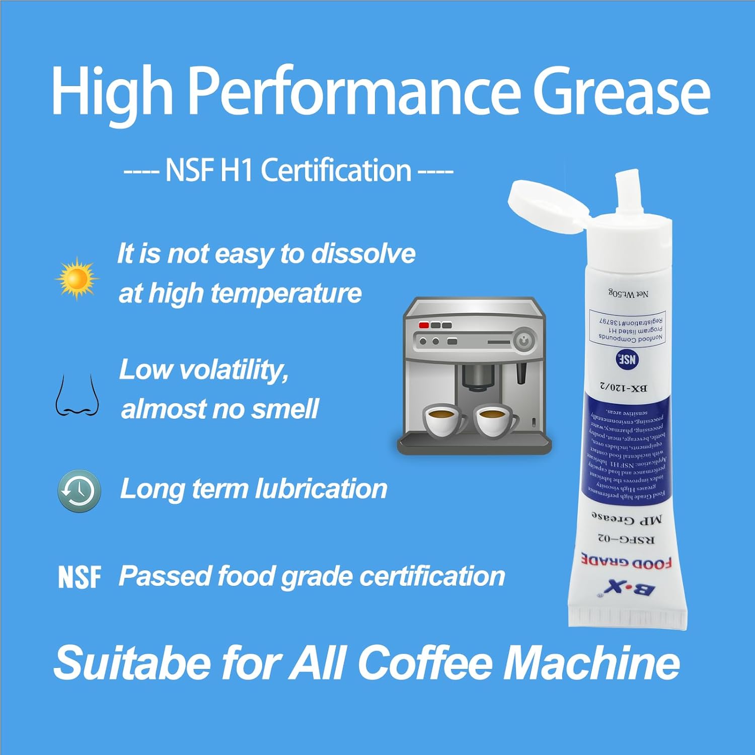 - Food Safe: Food grade grease is NFC H1 certified, so you can rest assured that they will be used to lubricate and maintain your coffee machine.